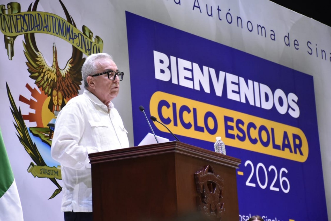 La Universidad Autónoma de Sinaloa (UAS) llevó a cabo la Ceremonia de Bienvenida del Ciclo Escolar 2025-2026 que fue presidida por el Rector, doctor Jesús Madueña Molina y fue inaugurado por el Gobernador del Estado, doctor Rubén Rocha Moya, quien refrendó su respaldo a la institución y expresó un llamado a las autoridades federales para que apoyen a esta Casa de Estudios en su problemática financiera.