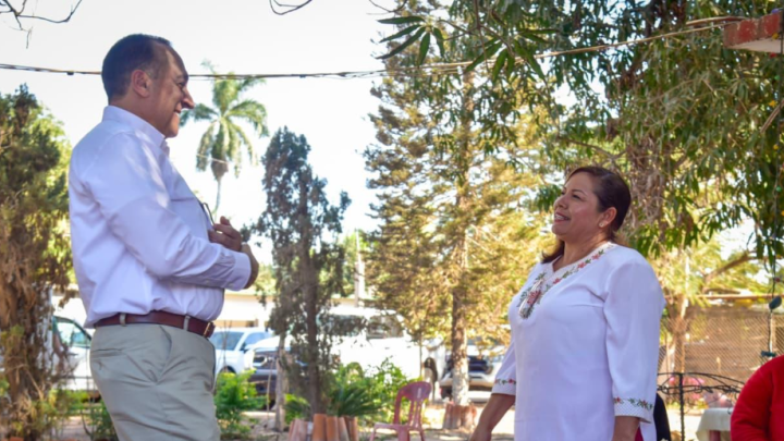 Ejido Agua Nueva, Ahome, Sinaloa.- El Presidente Municipal Antonio Menéndez De Llano Bermúdez, continúa sus recorridos por colonias y comunidades vulnerables para supervisar y entregar obras a los comités de vecinos que las solicitaron, como es el caso de Goros 2 y Agua Nueva, a donde acudió para reunirse con las familias beneficiadas y las autoridades comunitarias.