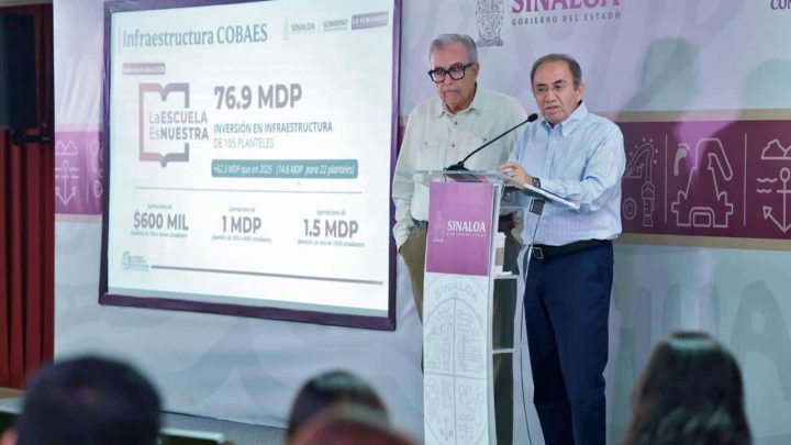 Culiacán, Sinaloa. – Durante su participación en la conferencia “La Semanera” encabezada por el gobernador Rubén Rocha Moya, el director general del Colegio de Bachilleres del Estado de Sinaloa (COBAES), Santiago Inzunza Cázares, informó que la institución recibirá este año una inversión superior a los 140 millones de pesos destinados al fortalecimiento de su infraestructura en todo el estado.