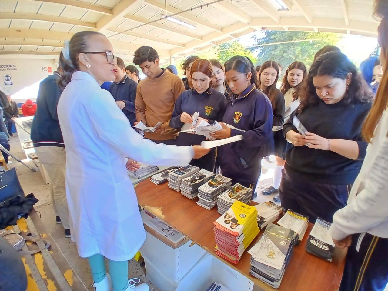 Rosa Delia Félix Ontiveros, responsable del PIT, señaló que considera un acierto muy pertinente estar presentes en esta muestra académica. Explicó que el programa de tutorías acompaña a los estudiantes a lo largo de toda su trayectoria en el bachillerato, y su relevancia aumenta en este evento donde los jóvenes están a punto de tomar una de las decisiones más importantes de su vida.