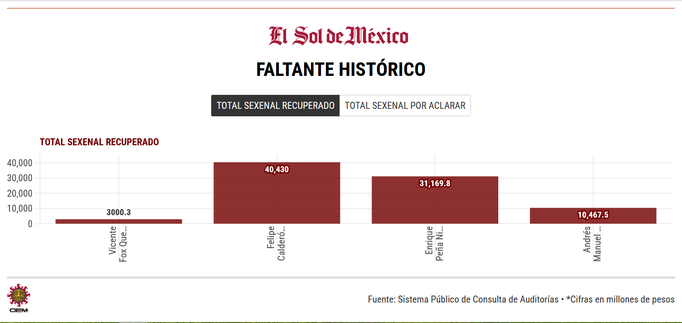 Del año 2000 a 2023 han quedado sin comprobar 191 mil mdp en la administración pública federal; de ellos, la mayor cifra se “extravió” durante el sexenio de López Obrador