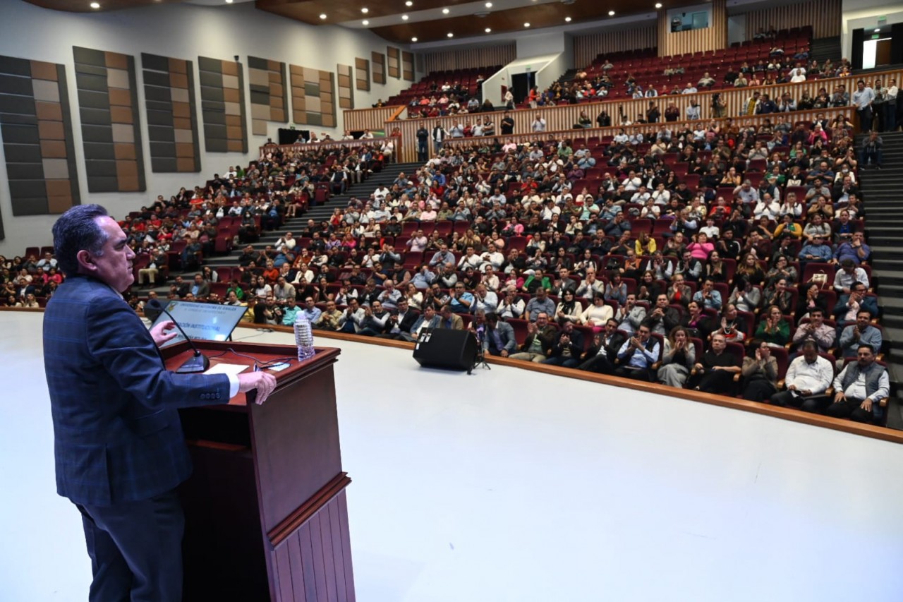 El Rector de inicio agradeció a toda la comunidad universitaria, especialmente al equipo de abogados, así como a quienes fungieron como Encargados del Despacho de Rectoría, por el apoyo brindado que le permitió estar de nuevo al frente de la institución después de un año y casi 2 meses de haber sido separado temporalmente, tiempo en el cual aseguró que la Universidad no dejó de trabajar en sus cinco funciones sustantivas y reiteró el agradecimiento a la Presidenta Claudia Sheinbaum para que se diera seguimiento a la mesa de diálogo y al Gobernador de Sinaloa, Rubén Rocha Moya.