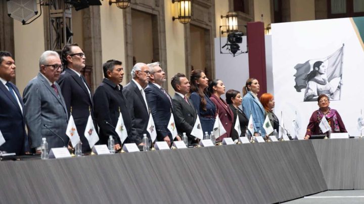 En el Salón Tesorería, de Palacio Nacional, tuvo lugar esta sesión, donde la presidenta Claudia Sheinbaum agradeció la colaboración de todas las gobernadoras y gobernadores, para aprobar estos acuerdos, cuyo propósito es replicar en cada uno de los estados los cuatro ejes de la estrategia de seguridad pública, como es atender las causas, inteligencia e investigación, fortalecimiento de la Guardia Nacional en el caso de la Federación y de las policías estatales en las entidades, y la coordinación de los estados con la propia Federación.