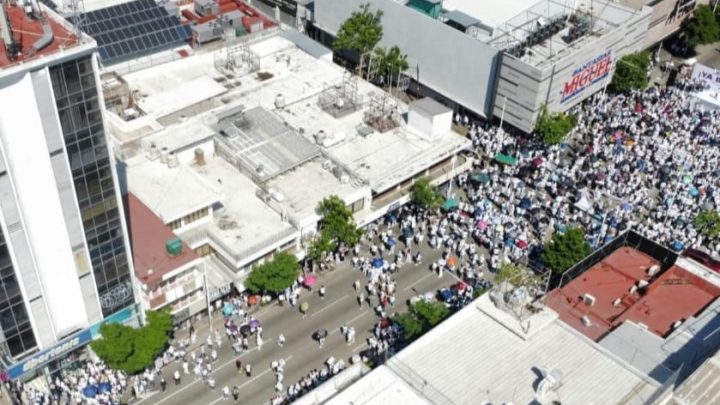 La procesión de protesta organizada por la Iglesia Católica y Coparmex y convocada por dirigentes de organizaciones civiles partió de las escalinatas de La Iglesia de La Lomita y culminó frente a la Catedral, donde los participantes clamaron por la paz y la justicia.