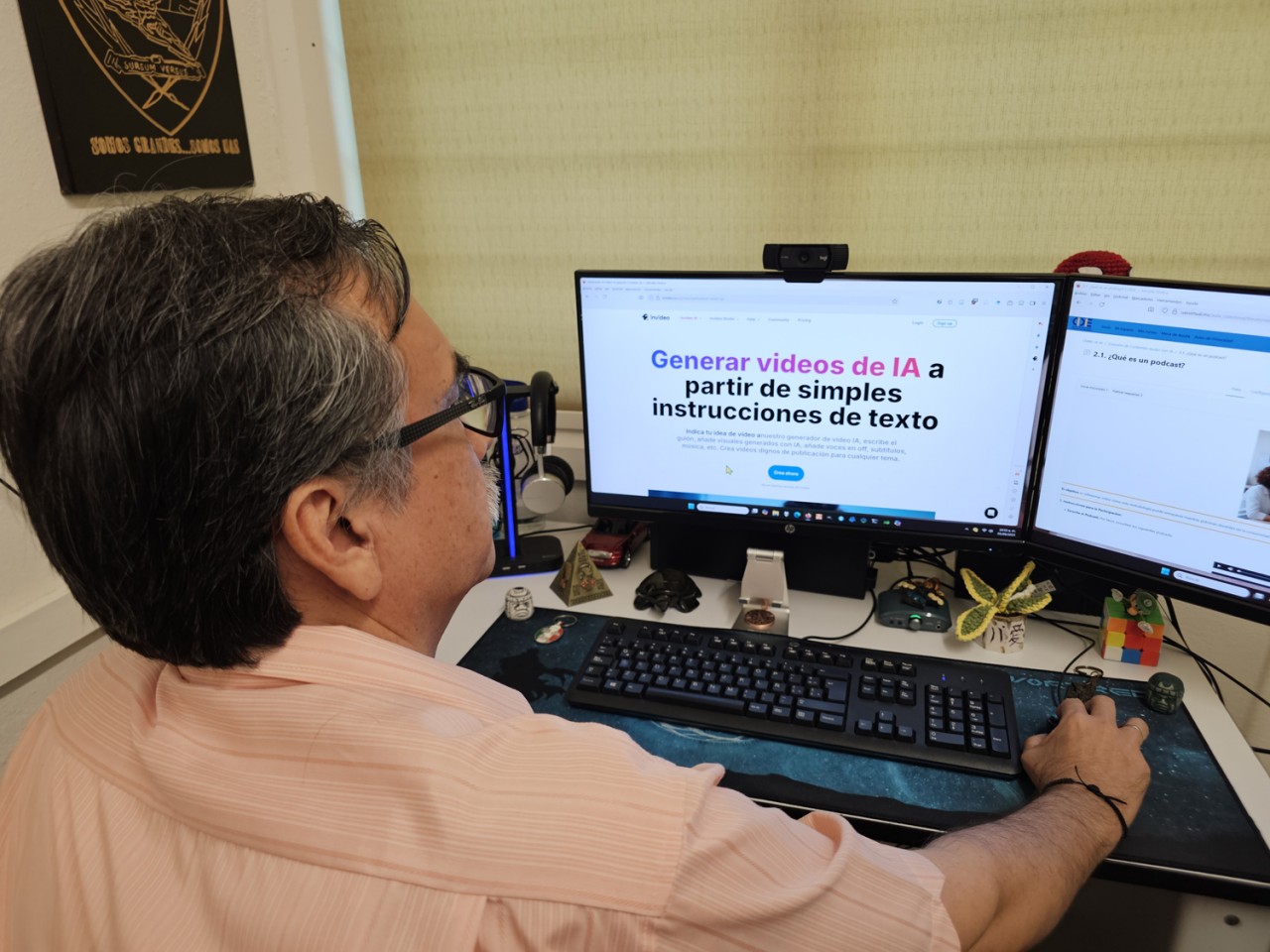 El doctor José Manuel Mendoza Román, responsable de impartir el taller “Creación de material audiovisual con IA para el aula invertida” compartió que el objetivo principal del curso, el cual se desarrolló de manera virtual, es proporcionar a los profesores herramientas que les permitan construir de recursos pedagógicos auxiliándose de la inteligencia artificial y diversificar sus metodologías en la práctica educativa.