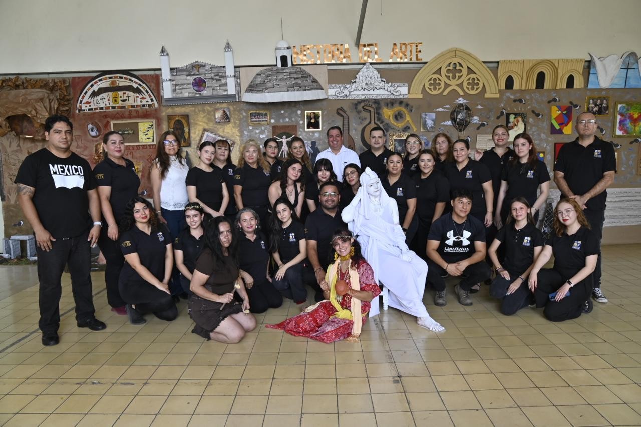 En un viaje a través del tiempo, estudiantes de primer año de la Licenciatura en Educación Artística de la Facultad de Artes de la Universidad Autónoma de Sinaloa (UAS) presentaron un periódico mural interactivo sobre la historia del arte, caracterizados como los personajes que marcaron cada época; la actividad fue dirigida por el maestro Miguel Ángel Espinoza.