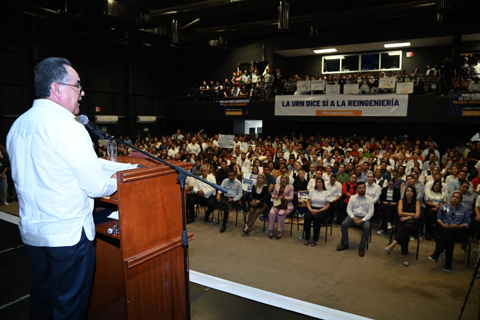“Es por ello que vamos a convocar el próximo lunes al Honorable Consejo Universitario para solicitarle que mandate a la Comisión de Elecciones y Consultas, una consulta en donde participemos todos los activos, y que incluyamos también a los compañeros jubilados, y que sea la decisión mayoritaria de la comunidad universitaria la que dé lineamientos a esta reingeniería que estamos proponiendo, nada a espalda de los trabajadores, siempre de frente y hablándoles con la verdad”, enfatizó.