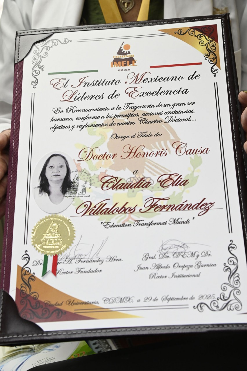 Con cargos importantes en distintas instituciones, Villalobos Fernández, aún incrédula de tal distinción del IMELE, institución que ha reconocido la trayectoria de más de 2 mil Doctores Honoris Causa, no solo en México sino en el mundo, compartió un breve segmento de su carrera.