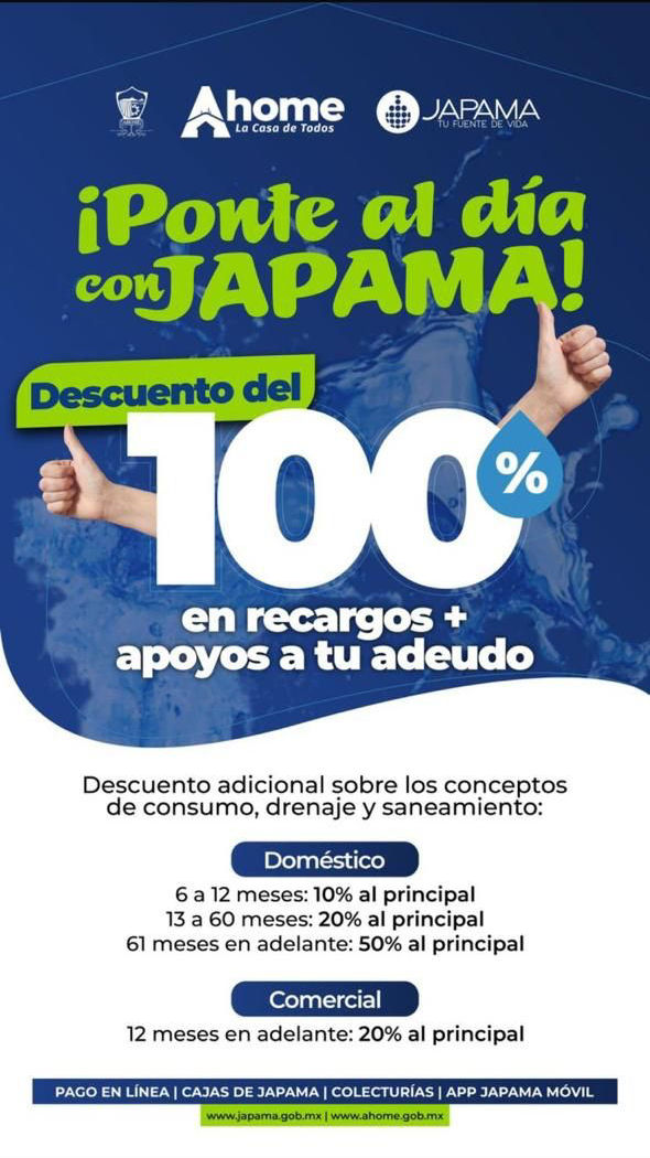 “Ponte al Día con JAPAMA”, descuentos de hasta el 100%