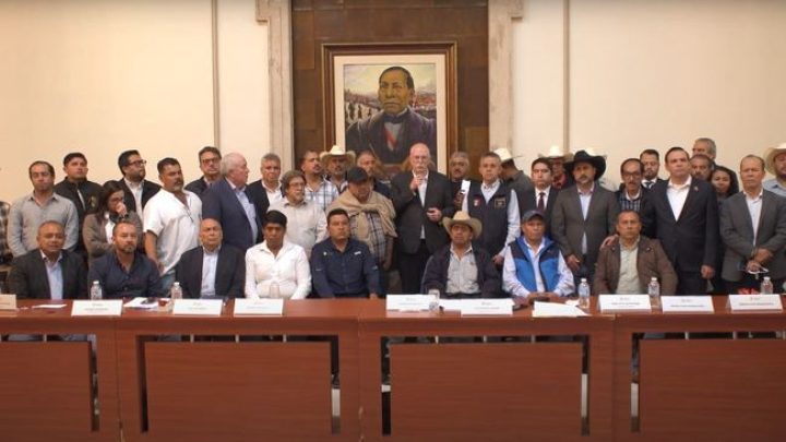 Me acompañan funcionarios de Conagua, funcionarios de la Comisión Federal de Electricidad, representantes de la Secretaría de Bienestar. También, están aquí representantes de los gobiernos de Jalisco, de Michoacán y de Guanajuato, y, sobre todo, una amplia delegación de dirigentes, de productores de los tres estados del Bajío ya mencionados: Jalisco, Michoacán y Guanajuato.