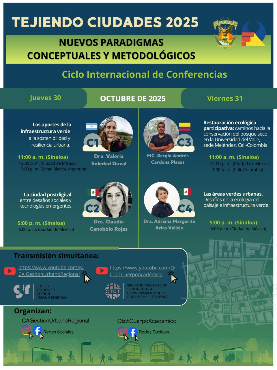 En el marco del Día Mundial de las Ciudades, la Universidad Autónoma de Sinaloa (UAS), a través de la Facultad de Arquitectura (FAUAS), invita al ciclo de conferencias “Tejiendo Ciudades 2025: Nuevos Paradigmas Conceptuales y Metodológicos”, el cual se desarrollará de manera virtual los días 30 y 31 de octubre.