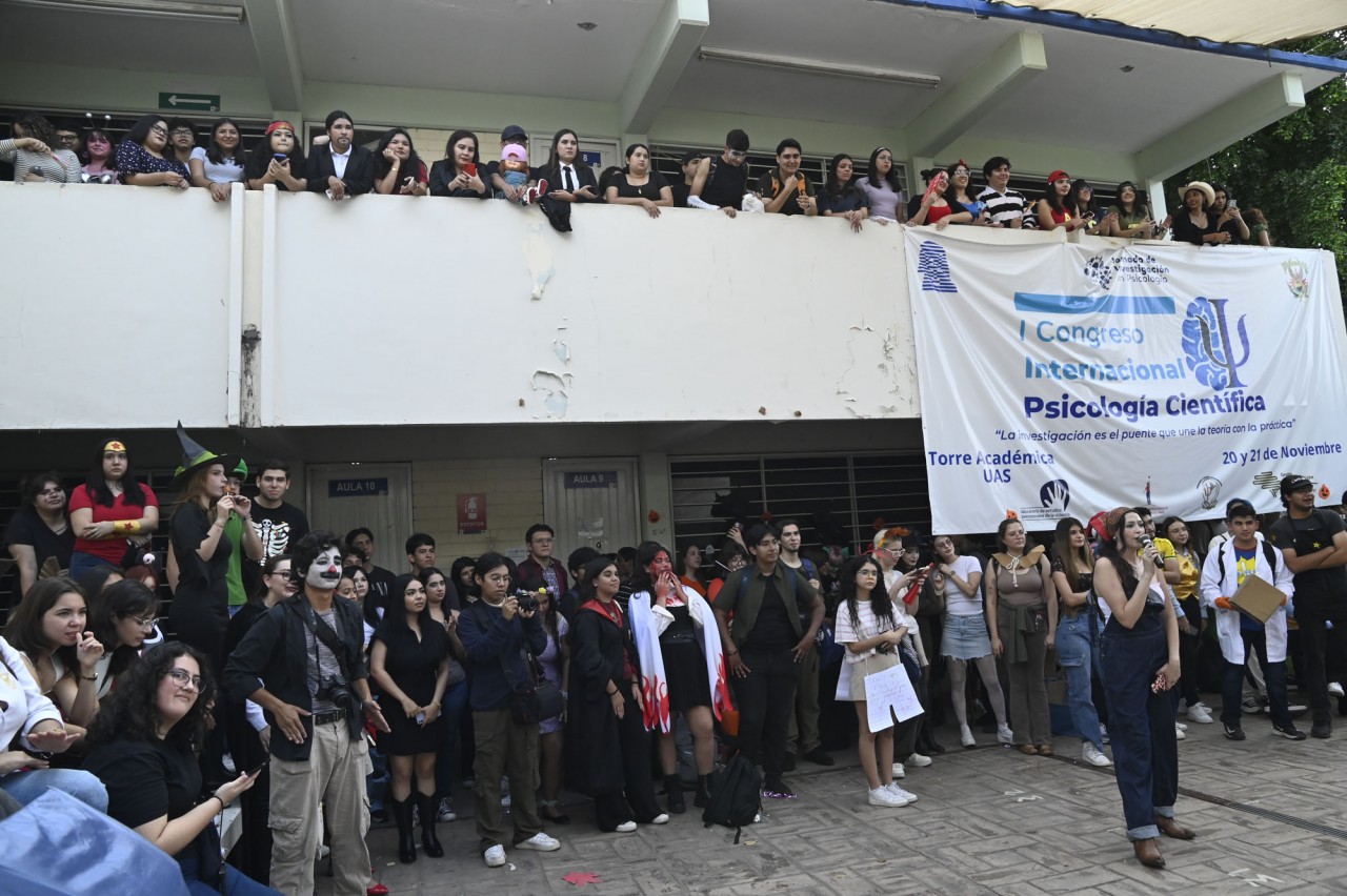 La Facultad de Psicología fue otro de los planteles que en esta ocasión organizó un concurso de disfraces teniendo una impresionante respuesta por todo el alumnado que dio muestra de su creatividad al caracterizarse de sus personajes favoritos, ahí la alumna Ana Fabiola Cabanillas señaló que además de fomentar la cultura, este tipo de actividades también fortalecen el compañerismo.