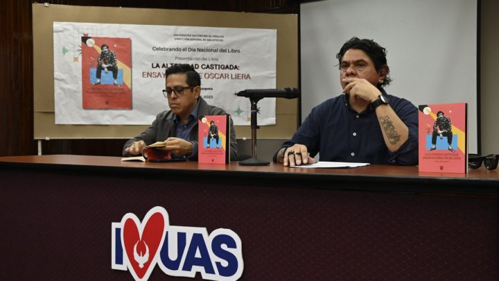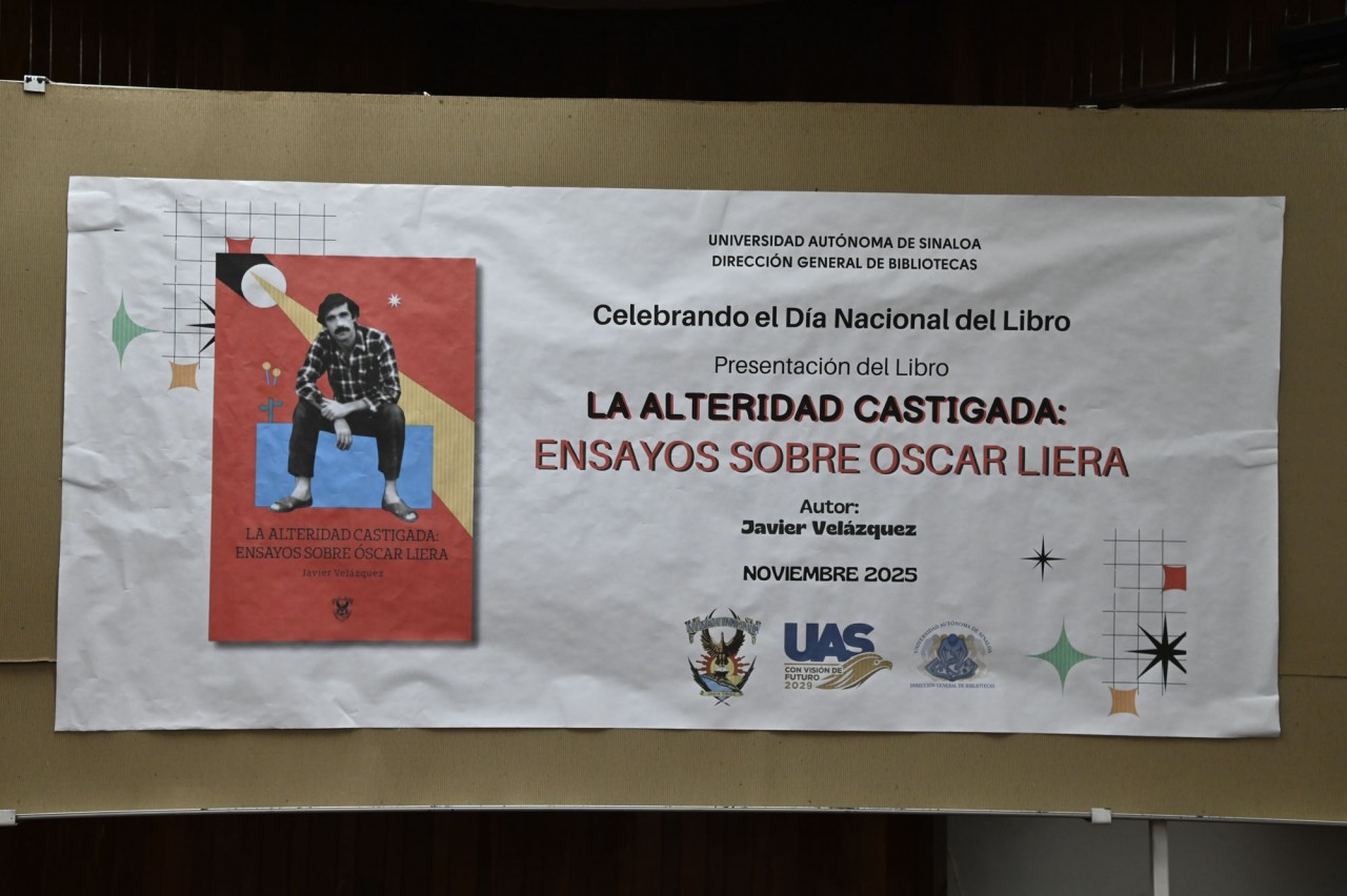 Con un encuentro literario, la Dirección General de Bibliotecas de la Universidad Autónoma de Sinaloa (UAS) celebró el Día Nacional del Libro con la presentación de: “La alteridad castigada: Ensayos sobre Óscar Liera”, del escritor Javier Velázquez Hernández, obra que reaviva el legado del dramaturgo sinaloense y plantea un análisis sobre la identidad, y el poder del teatro como espejo social.
