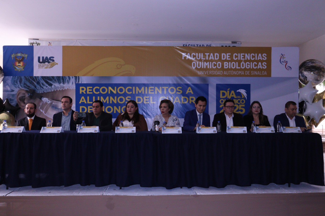 Dando valor y agradecimiento a los que dan vida a la Universidad Autónoma de Sinaloa (UAS), la Facultad de Ciencias Químico Biológicas (FCQB) llevó a cabo la Ceremonia de Reconocimiento a Alumnos de Cuadro de Honor del ciclo escolar 2024-2025, esto en el marco de la celebración del Día del Químico.