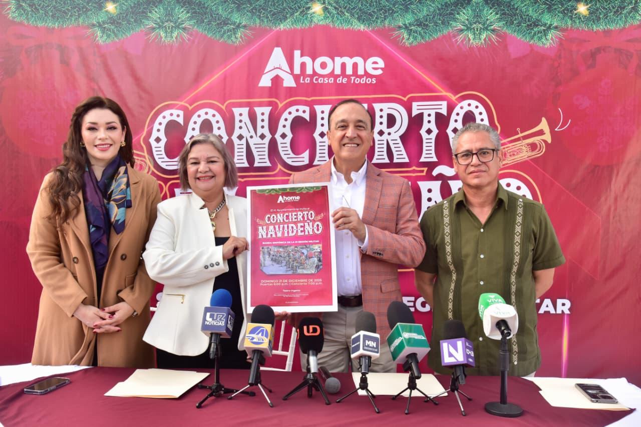 Los Mochis, Ahome, Sinaloa.- El Gobierno Municipal de Ahome, que encabeza el Presidente Municipal Antonio Menéndez De Llano Bermúdez, invita a la ciudadanía y visitantes a disfrutar del Concierto Navideño de la Banda Sinfónica de la III Región Militar, un evento de gala que se llevará a cabo este domingo en el Teatro Ingenio, como parte de las actividades culturales decembrinas.
