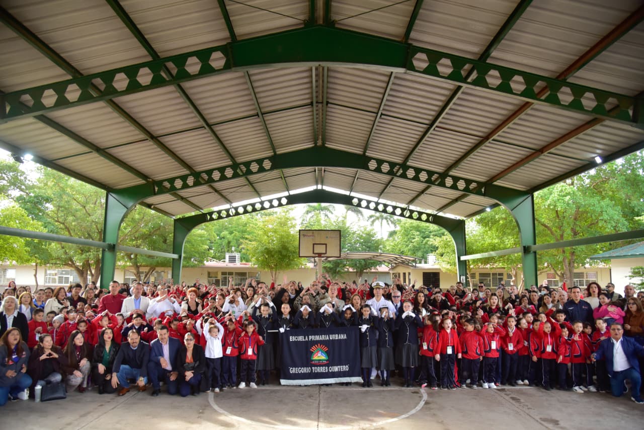 Los Mochis, Ahome, Sinaloa. – En un ambiente de orgullo, gratitud y alegría, la comunidad de la Escuela Primaria Gregorio Torres Quintero realizó un acto cívico en el marco del Día Internacional de la Educación, donde la niñez fue protagonista al enviar un mensaje que conmovió a autoridades, maestros, y padres de familia.