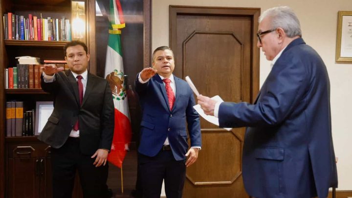 Culiacán, Sinaloa.- El gobernador Rubén Rocha Moya nombró como nuevo secretario de Normatividad e Información Registral, de la Secretaría General de Gobierno, a David Eduardo Vargas Rodríguez; y también como subsecretario de Desarrollo Sustentable, de la Secretaría de Bienestar y Desarrollo Sustentable, a Francisco Javier Barrón Aguayo, ambos funcionarios que ya formaban parte de la administración estatal en otros cargos.